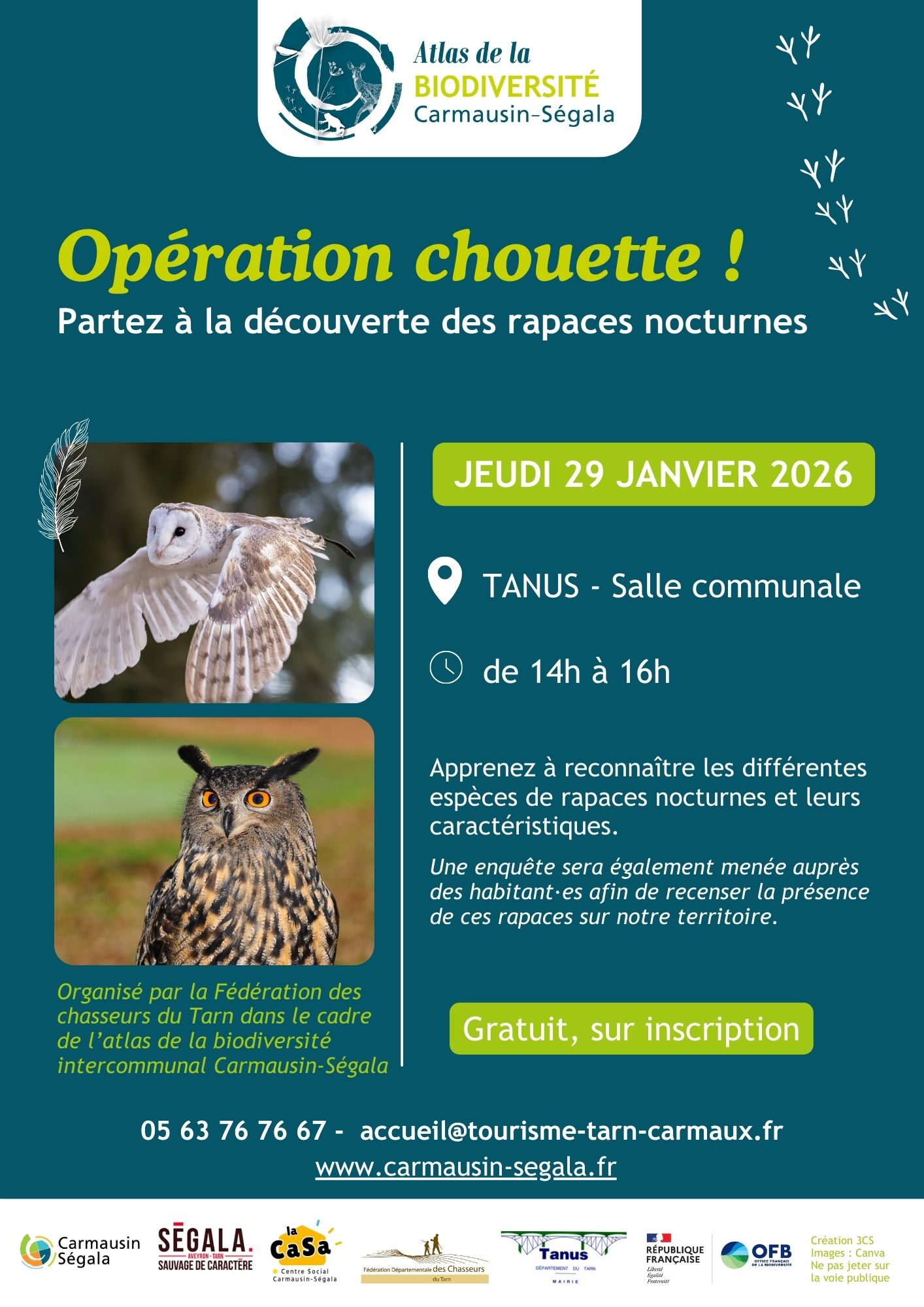 Présentation et aide à l’identification des principaux rapaces nocturnes et faîtes remonter vos connaissances sur la biodiversité (espèces, habitats, milieux humides) sur la ville de Carmaux.